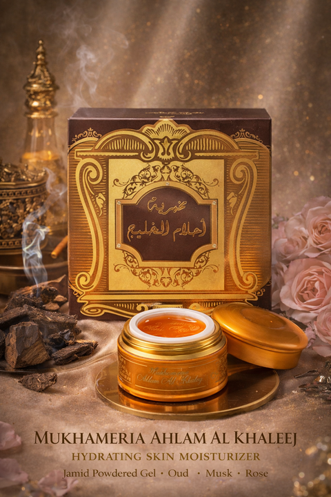 Mukhamria Ahlam Al Khaleej Hydrating Skin Moisturizer 30ml – Black Musk, Oud & Incense Jamid Gel